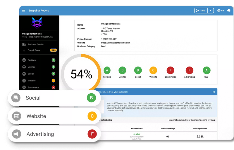 Reach Out, Be Amazed. Get started by creating a free account. You will receive a complimentary snapshot report that details how your business is performing online.